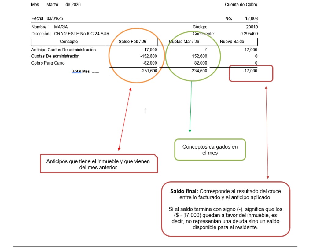 Ajustes por terceros: Si el saldo proviene de una consignación errónea de otra persona y esta reclama el dinero, el área contable retirará el abono de su cuenta, lo que podría generar un saldo pendiente en su inmueble.