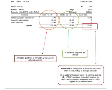 Si al final de su cuenta de cobro aparece un valor con un signo menos (-), esto no significa que tenga una deuda, sino que tiene un saldo a favor.